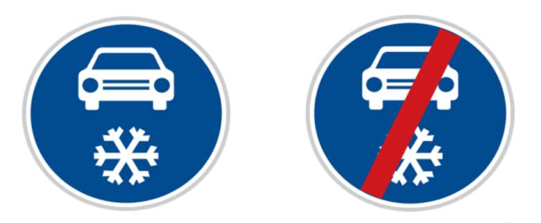 I když to zní bizarně, v některých oblastech budete potřebovat zimní přezutí po celý rok bez ohledu na počasí. Jde o místa označená značkou Zimní výbava. Řidiči nemusí mít zimní přezutí pouze tehdy, je-li cedule opatřena dodatkovou tabulkou, která upravuje její platnost. Podobných cedulí najdete v ČR přibližně 100.
